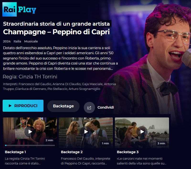 Inviato: Mer Mar 26, 2025 20:24 Oggetto: CHAMPAGNE Peppino-Di-Capri-film di Cinzia TH Torrini RAIPLAY |