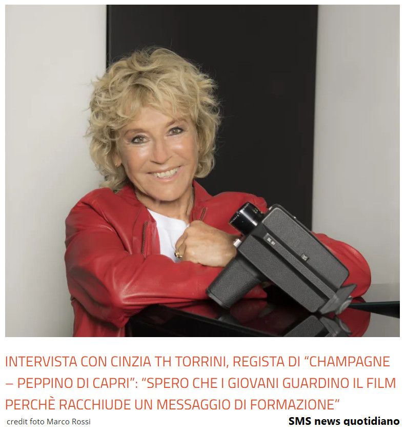 Una carriera costellata di film e serie di successo, una capacità fuori dal comune di raccontare storie e personaggi con eleganza ed empatia, facendone emergere colori ed emozioni, Cinzia TH Torrini ha diretto il film “Champagne – Peppino Di Capri”, coproduzione Rai Fiction – O’ Groove, con Francesco Del Gaudio, Arianna Di Claudio, Gaja Masciale, Antonia Truppo, Alessandro Gervasi e Gianluca di Gennaro, in onda lunedì 24 marzo in prima serata su Rai 1.
